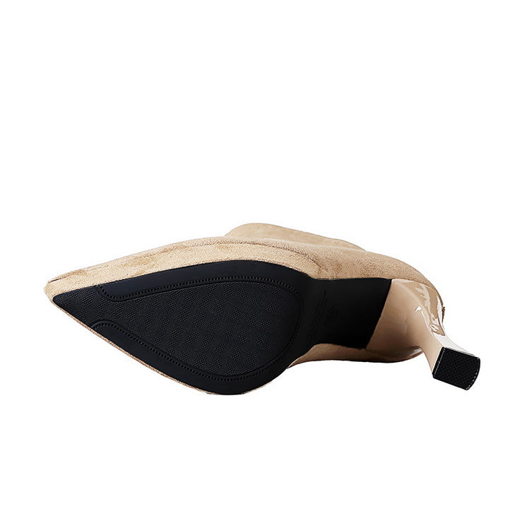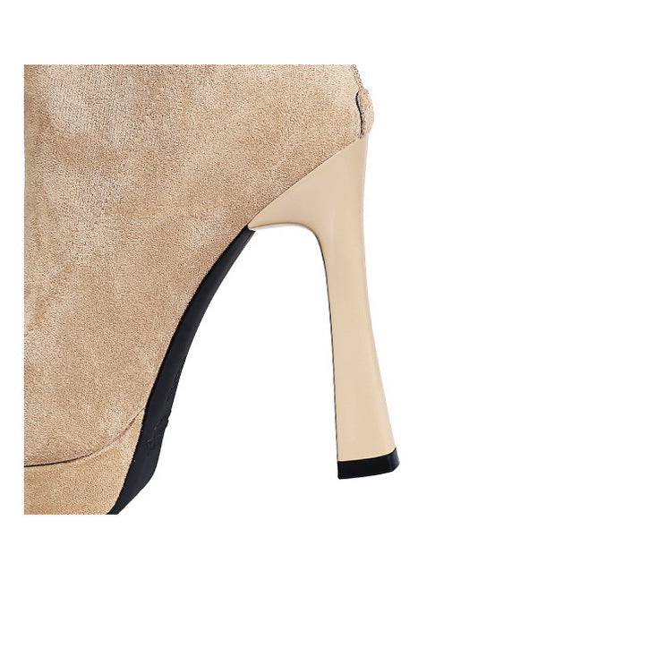 Chunky Heel High Heel Waterproof Platform Boots Women Pointed Toe Suede Stretch Single Boots Skinny Boots Nice Looking Short Boots