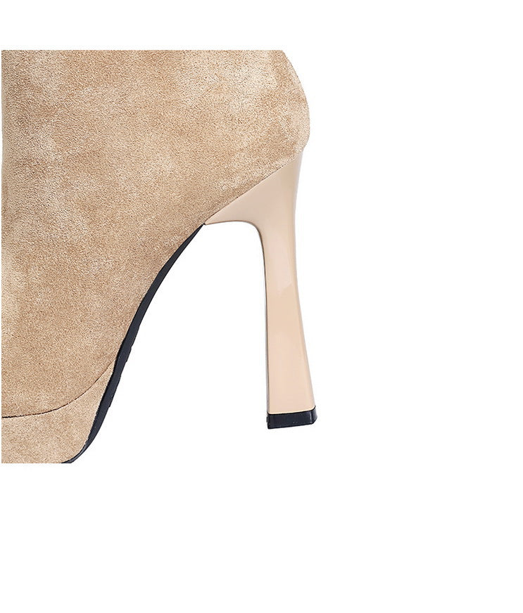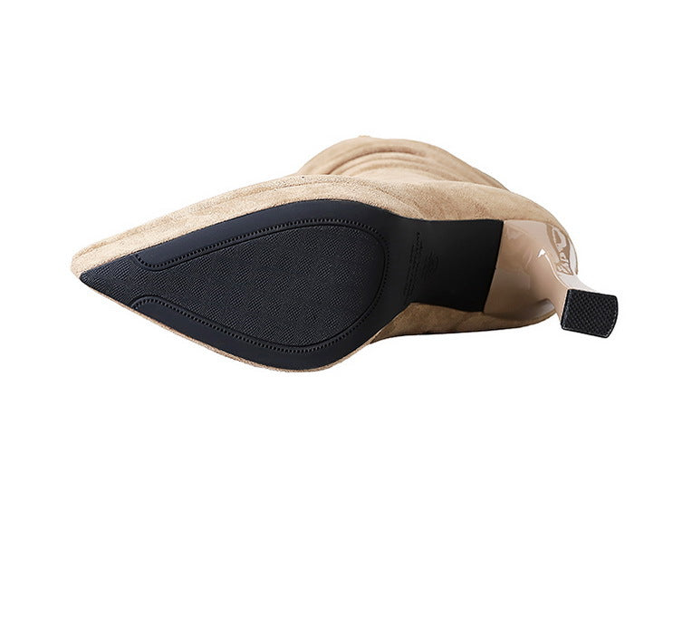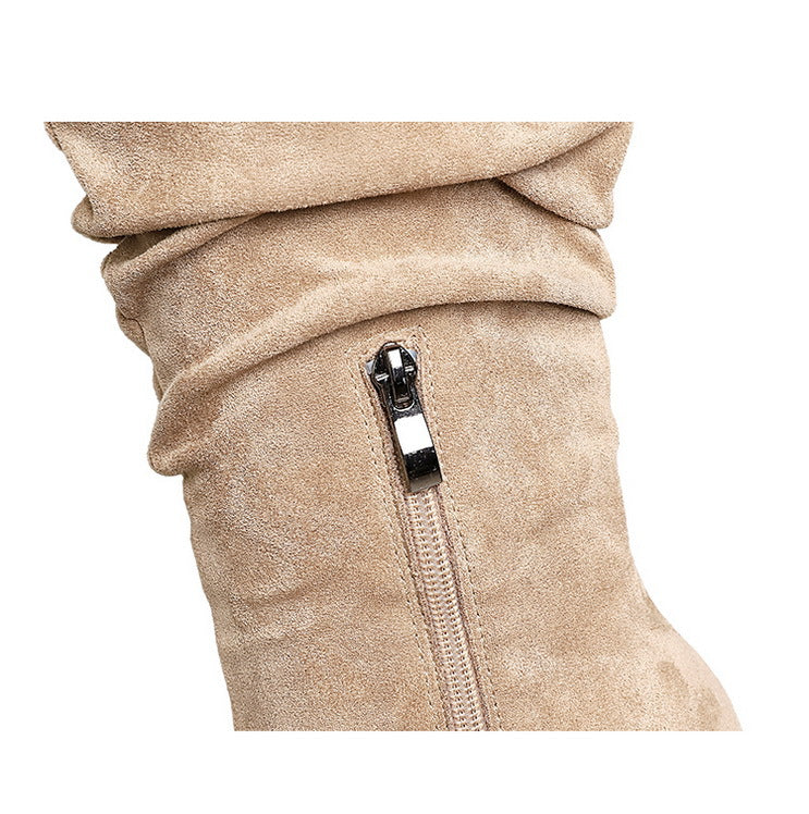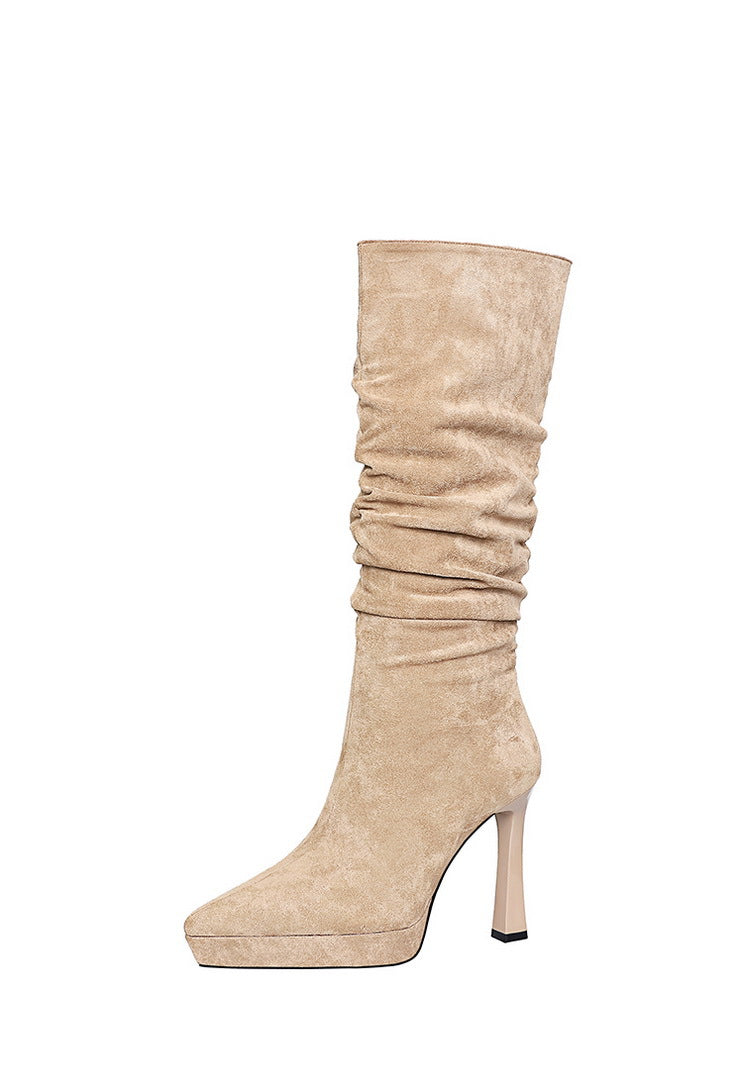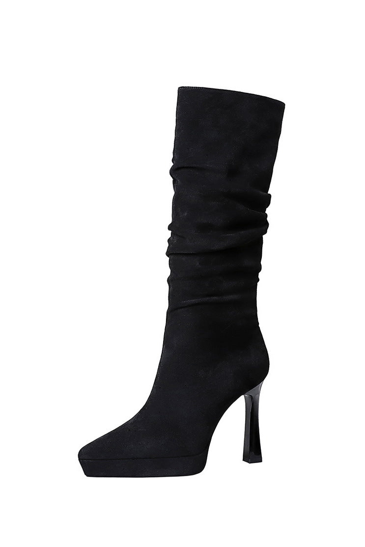 Chunky Heel High Heel Pointed Toe Skinny Boots Women High Platform Side Zipper Pleated Pile Boots