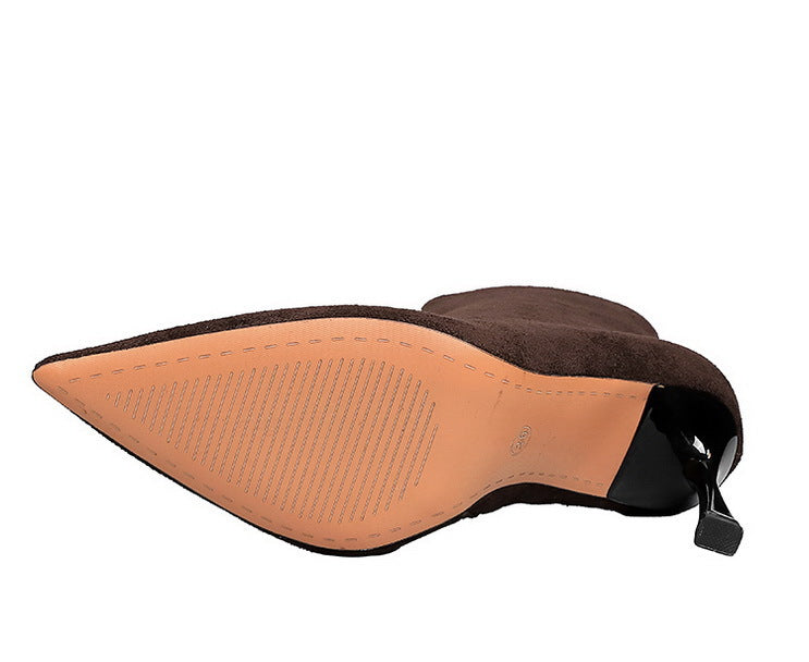 Elegant Boots Women High Grade Suede Pointed Stiletto Heel Side Zipper High Heeled Skinny Boots Women