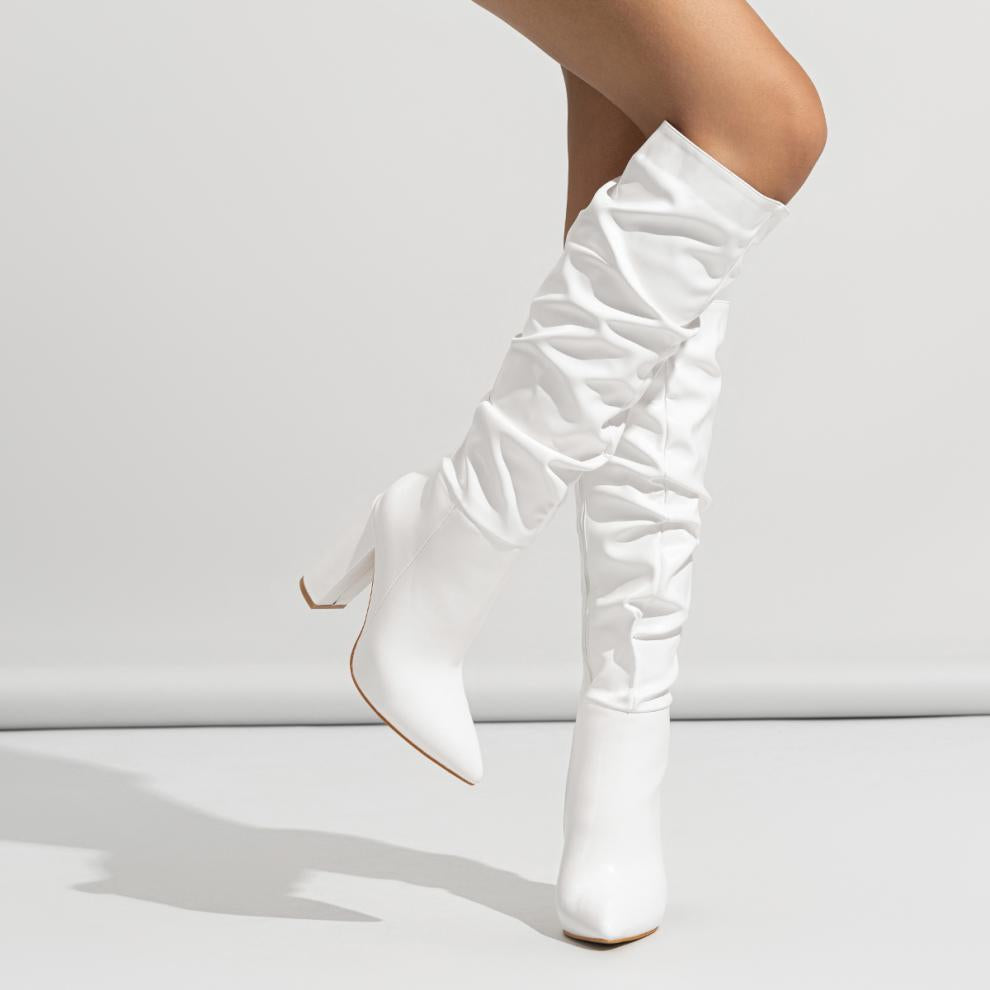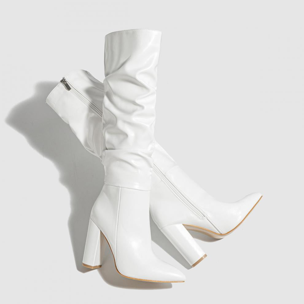 Pointed Toe Chunky Heel Pointed Toe Natural Wrinkle ide Zipper Boots plus Size Ankle Boots
