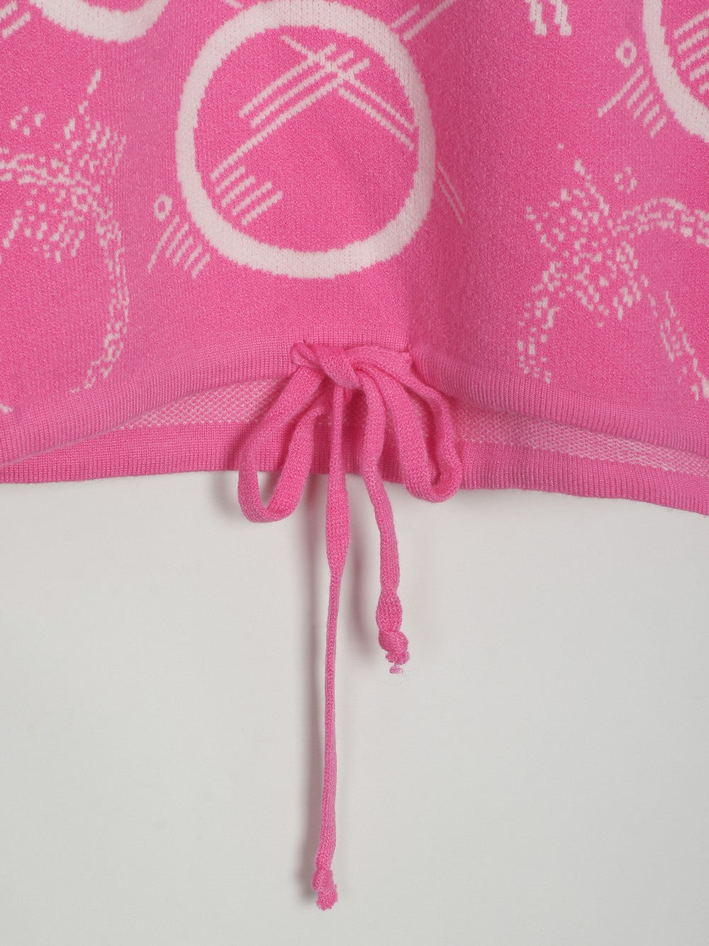 This fun graphic sweater brings personality to your everyday wardrobe. The intricate jacquard detailing adds texture and visual interest while the relaxed fit keeps you comfortable all day long. A subtle tie detail finishes the look with a feminine touch — perfect for those who like their knitwear with a little character.
