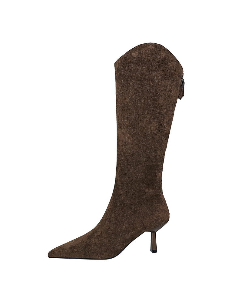 Boots Women Stiletto Heel Pointed Toe V Shaped Mouth Skinny Boots Fashionable Boots below the Knee Tall Knight Boots