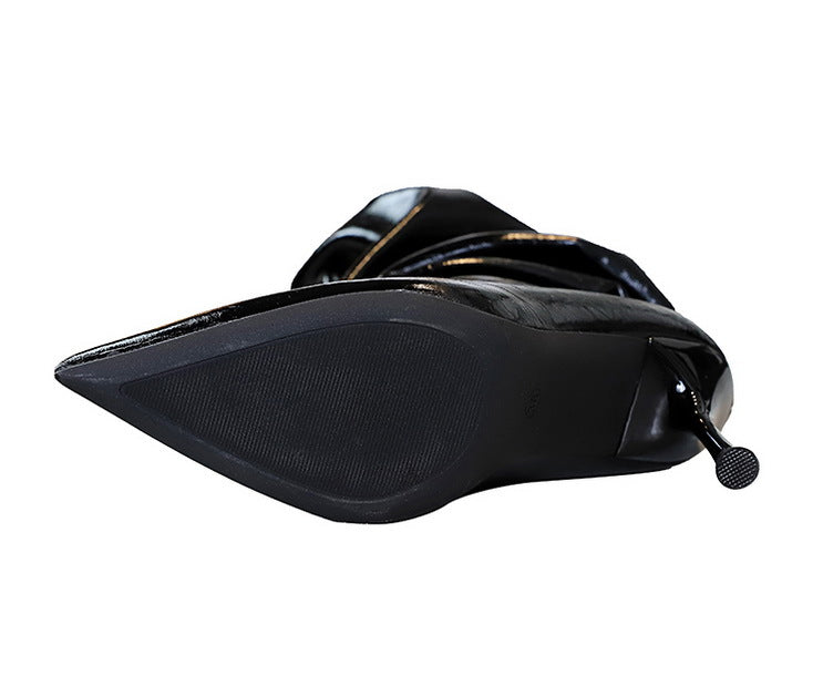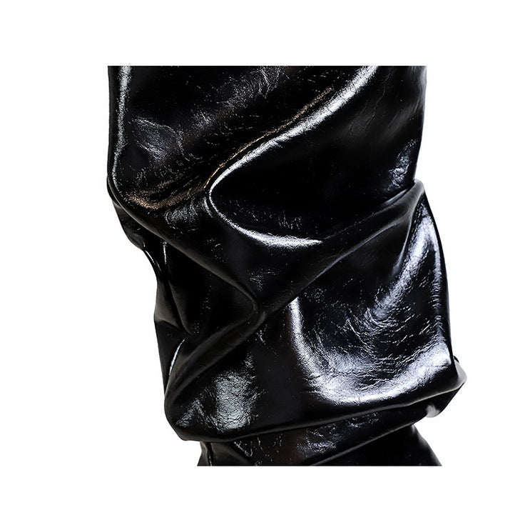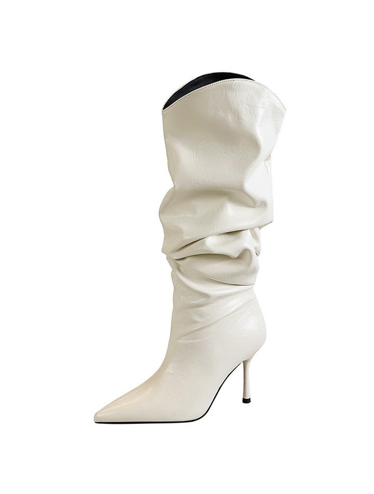 Women Pointed Stiletto Heel Pleated Lazy Pile Boots Wide Boots below the Knee Tall Knight Boots